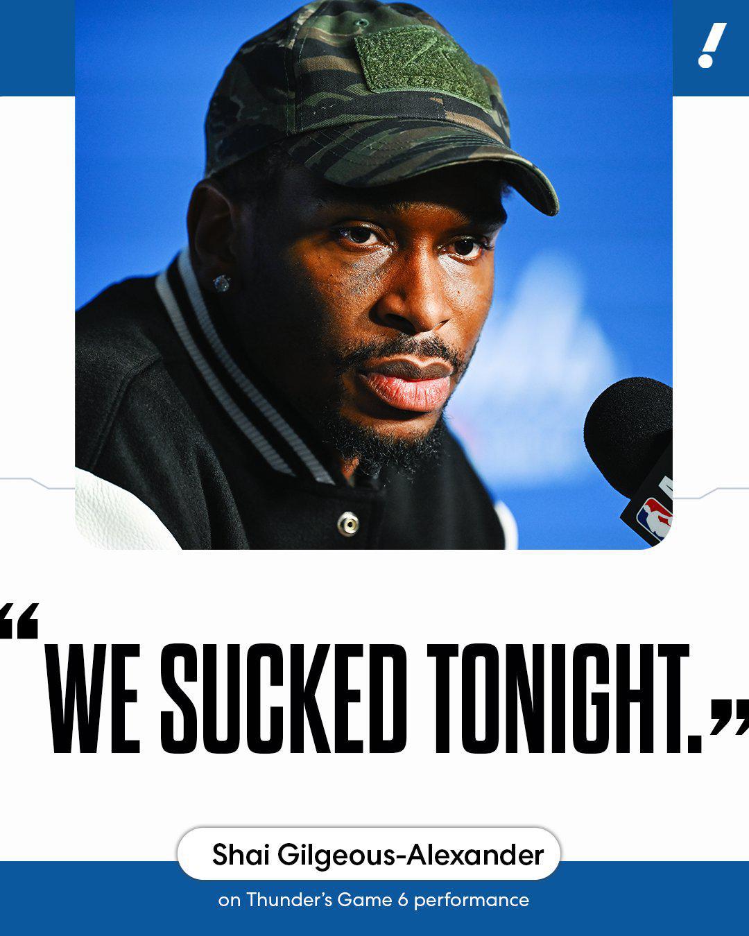 雷速体育6月20日讯 NBA总决赛G6,步行者主场108-91大胜雷霆,将系列赛拖入抢七大战。雷霆核心亚历山大本场表现不佳,赛后发布会上飚出了脏话。